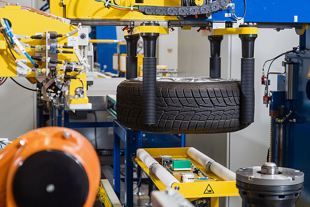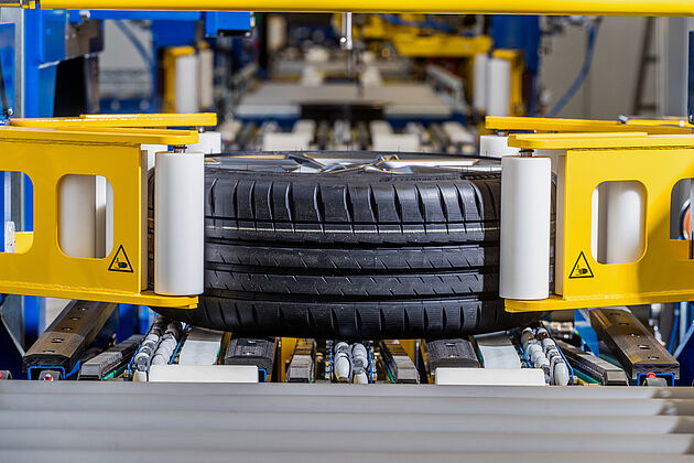 In the wheel matching machine the rolling behaviour of the complete wheel is optimised. For this purpose, the required match angle between tire and rim is recorded and controlled automatically. You can find further information here.